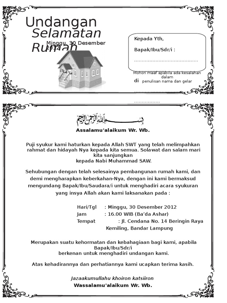 Undangan Tasyakuran Rumah : Contoh Surat Contoh Surat Undangan Syukuran Rumah Baru Doc / Dan kehadirannya kami ucapkan terimakasih.